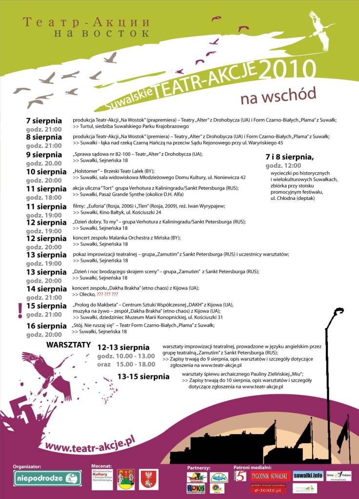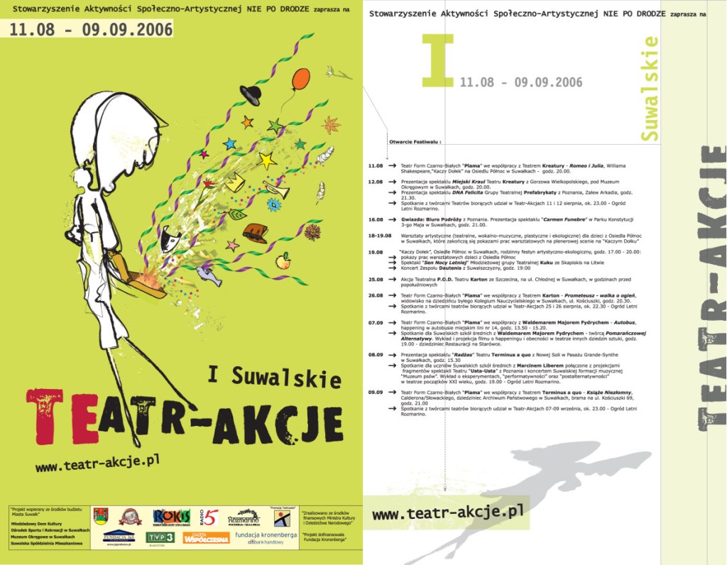 Tak i wtedy postanowiliśmy, że za rok wznawiamy festiwal. Przygotowaliśmy się już jednak solidniej, bo zadbaliśmy też o fundusze, zerowe Teatr-Akcje robiliśmy zupełnie bez pieniędzy. Natomiast przed pierwszymi Teatr-Akcjami poszliśmy z Rudym (Krzysztof Rudowicz) do Mariusza Klimczyka, wówczas zastępcy prezydenta miasta, prosić o wsparcie festiwalu przez suwalski samorząd.