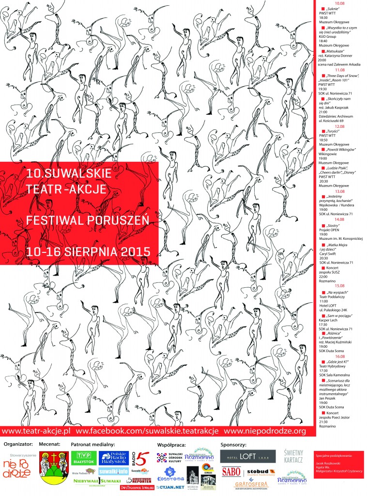 Dostaliśmy dotację z Miasta Suwałki, choć oczywiście ona nie wystarczy na pokrycie całości kosztów. I choć może tegoroczny festiwal nie będzie w takim zakresie, jak założyliśmy sobie na początku, ale się uda, bo opiera się na energii ludzkiej. Nawet mimo, że nie wszyscy mają etatową pracę, w festiwal angażują się na 100 procent.