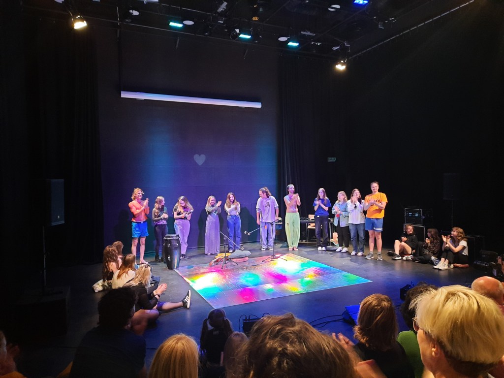 Byłoby jednak nieuczciwością nie dodać dobrego zdania o doskonałym warsztacie aktorski trójki młodych ludzi, którzy zbudowali spektakl ze scen symbolizujących różne relacje, zwłaszcza rodzinne. Zapadną pod powieki sylwetki w powykręcanych pozach, które wymagają żelaznej sprawności fizycznej. Zapamiętam monolog Daniela Namiotko rozpoczęty niespodziewanie z ostatniego rzędu spomiędzy publiczności, jakby improwizowany, ale tutaj pewności, oczywiście nie mam, bo Daniel (dodam, że nasz Daniel, z suwalskiej ziemi, wykształcony na krakowskiej Akademii Sztuk Pięknych, praktykujący na scenach Starego Teatru w Krakowie, Teatru Narodowego w Warszawie, kieleckiego Teatru im. Stefana Żeromskiego i Teatru Polskiego w Poznaniu oraz w licznych filmach) jest profesjonalnym aktorem. Dobrze zapamiętam też urok delikatnej piosenki w scenie finałowej, kiedy do aktorów profesjonalnych dołączyli amatorzy, młodzi uczestnicy warsztatów.