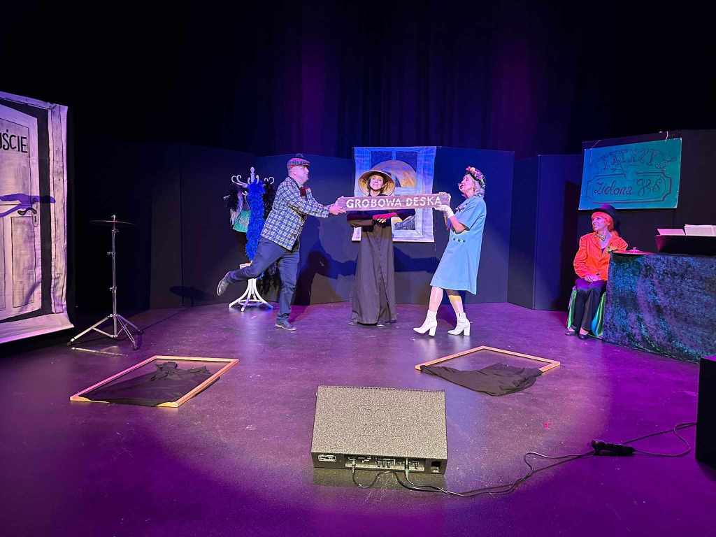 Czegóż oni nie wyprawiali w tym „Najmniejszym teatrzyku świata” Zielona Gęś w Sali Kameralnej Suwalskiego Ośrodka Kultury. Śmieszyli, straszyli, romansowali, żywili się na przemian biblijnym jabłkiem i wierszami, za 800 złotych wycinali serce, czy rzucali ledwo żywym pacjentem po szpitalnych oddziałach. Ludzką mową odzywał się pies, osiołek i nawet kurtyna. Społeczeństwo potakiwało więc ze zrozumieniem, gdy głodna rodzina czekała aż matka przyniesie literaturę do jedzenia, trzęsło się razem z nieszczęśnikiem, którego temperatura ciała spadła do 14 stopni, truchlało w gabinecie Szarlatana Jamayki i razem z woźną z niecierpliwością wypatrywało Heńka, który oczywiście nonszalancko spoźniał się, kiedy między aktami czekała robota na scenie.