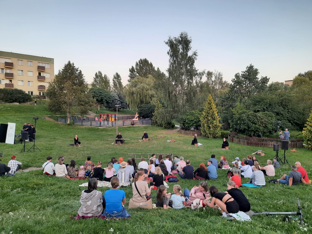 Tego środowego (7 sierpnia) wieczoru na Kaczym Dołku byli prawie wszyscy: kilkuletnie dzieci i nastolatki zaciekawione tym, że coś niecodziennego dzieje się na ich podwórku, ich rodzice, babcie i dziadkowie, publiczność podążająca od dwóch tygodni za każdym Teatr-Akcjowym wydarzeniem, mieszkańcy, którzy właśnie wyprowadzili na wieczorny spacer swoje psy i zauważyli, że na ich codziennej trasie odgrywany jest jakiś teatr, rowerzyści, wracający z letniej wyprawy nad jezioro i wszyscy inni, czyli ci, którzy, przynajmniej z grubsza, wiedzieli po co przyszli i ci zupełnie przypadkowi. Razem. Nad ich głowami w zapadającym zmierzchu przelatywały kaczki. Właściwie – tak mógłby wyglądać koniec świata.