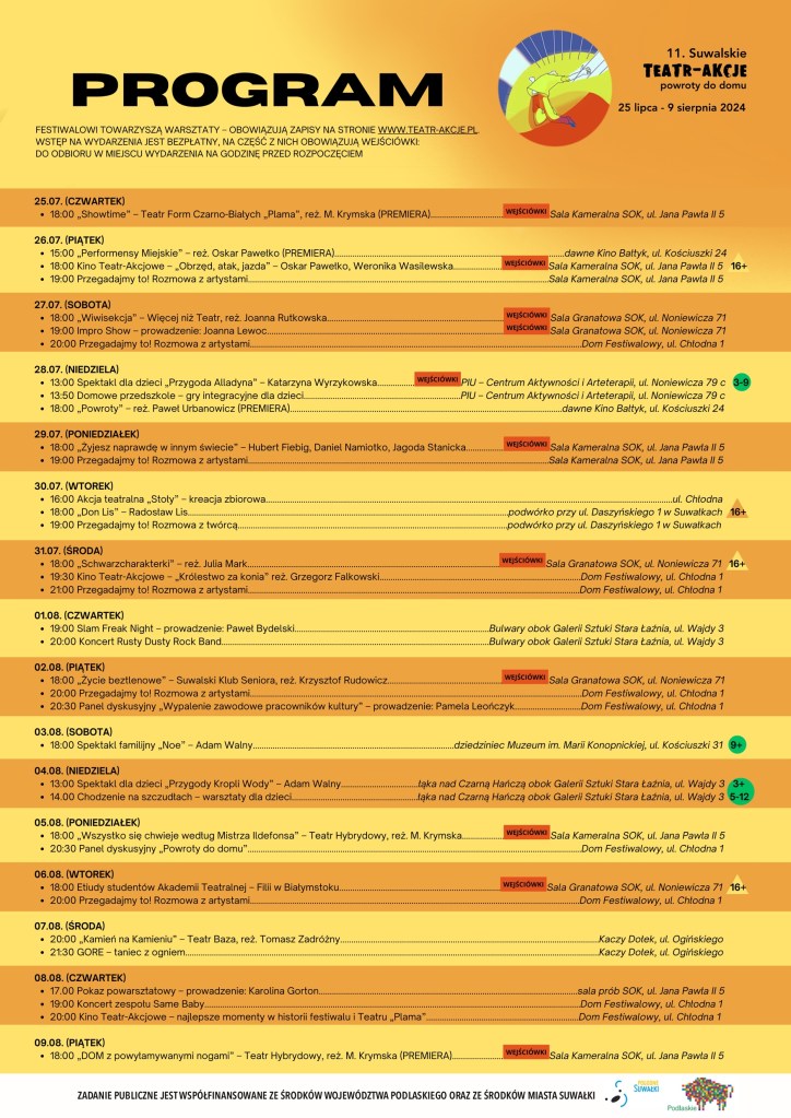 - 15:00 Performensy Miejskie – reż. Oskar Pawełko (PREMIERA)